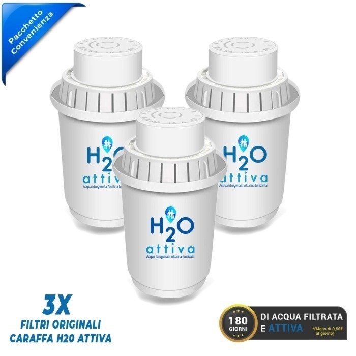 3X Filtri Originali a 7 Fasi per Caraffa H20 Attiva | Pacchetto Convenienza 180 giorni di Acqua Filtrata e Attiva